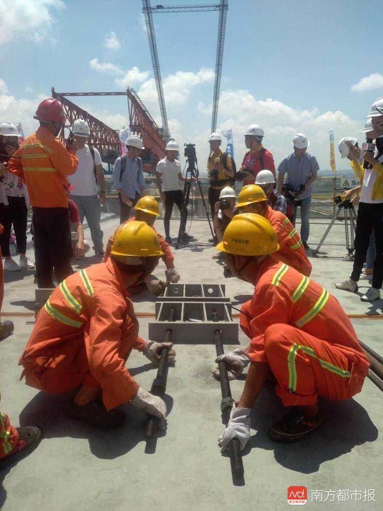 虎门二桥项目副总工程师鲜荣介绍,为确保顺利吊装,前后准备花了半年,邀请国内知名桥梁专家多次召开方案研讨会,全程跟踪全新500吨级跨缆吊机的设计、检验与吊装维护,组织现场施工人员反复模拟吊装过程,并多次与海事部门进行协商规划,确保吊装过程中航道安全,“为确保最后这片梁顺利合龙,我们准备了半个月。”